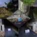 ▲基石位置全景,位於民宅圍牆邊算是好找,一旁民宅正門入口被排水溝挖斷,雖然遠看黑漆漆的但實際上還是有住人。