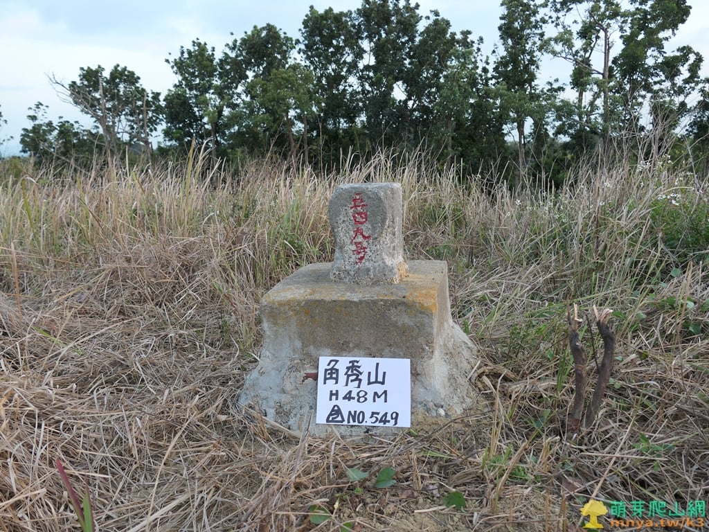 角秀山 標高48公尺 三等三角點549號 座標:181558, 2567394;23.2054661, 120.3394543