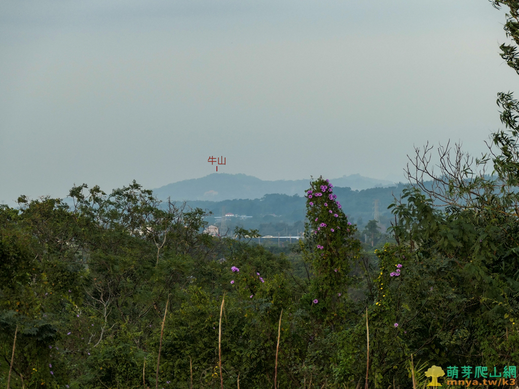 ▲山頂往北偏東拉近眺望位於東山的牛山(212M),可見山腰位置的法雲禪寺。