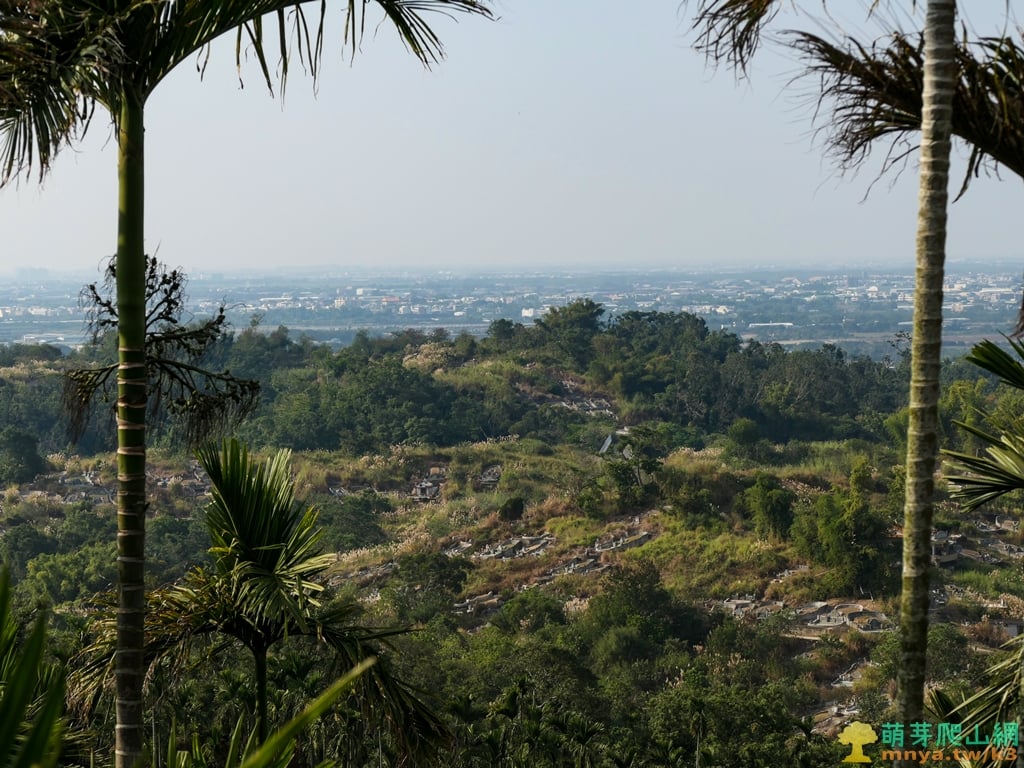 ▲往西俯瞰另一側的墳墓山,遠眺廣袤的嘉南平原,往海的方向霧霾重看得不遠。