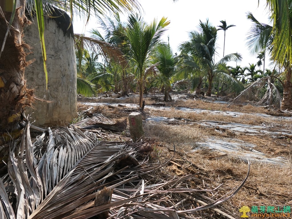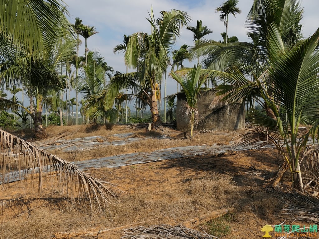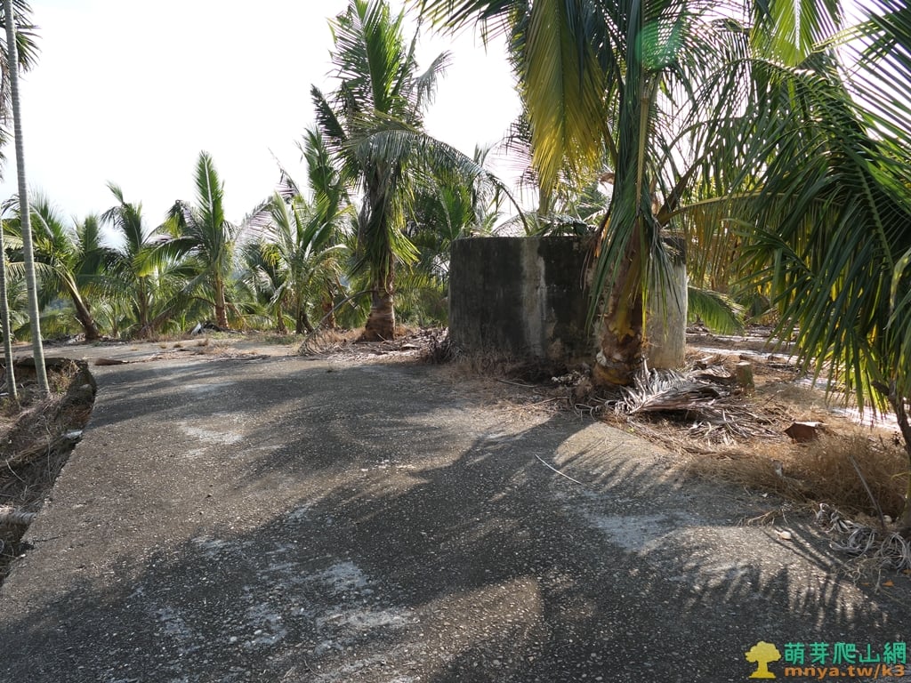 ▲車行至椰子園路寬處停車,點位就在右前方椰子園內的水泥水塔旁,續行水泥路右彎後也可到達水泥水塔旁。