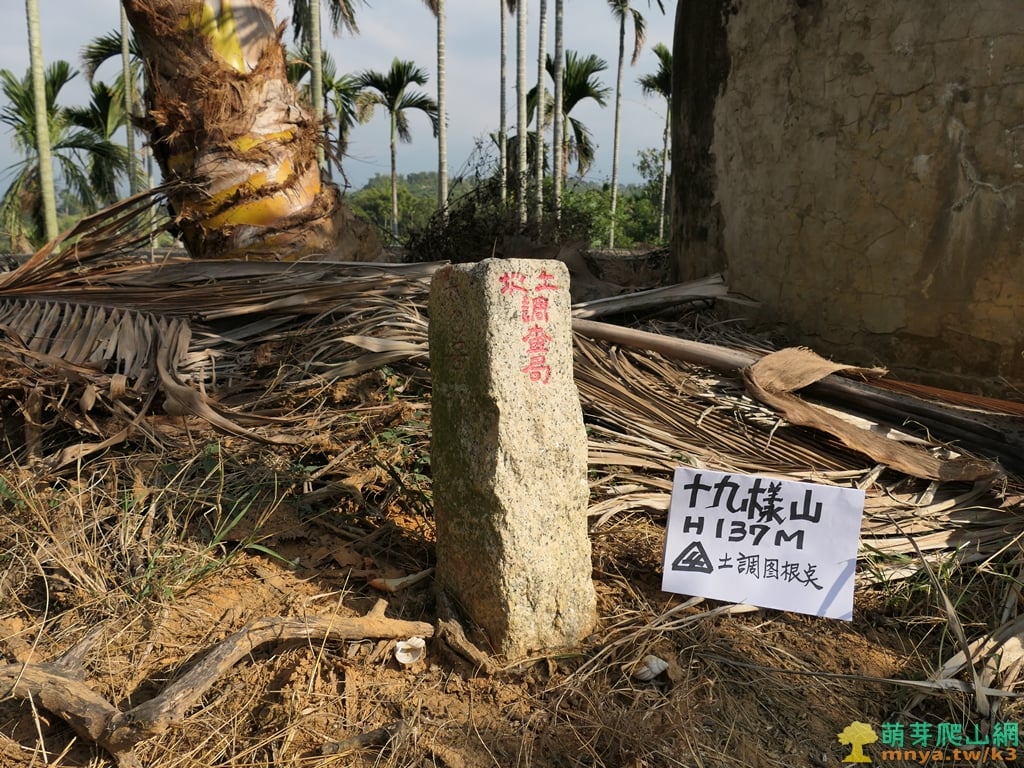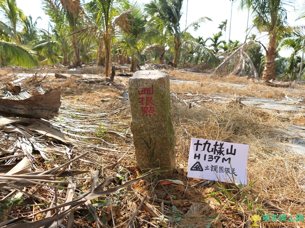 十九樣山 標高137公尺 土地調查局圖根點 座標:195066, 2590938;23.4185657, 120.4705729