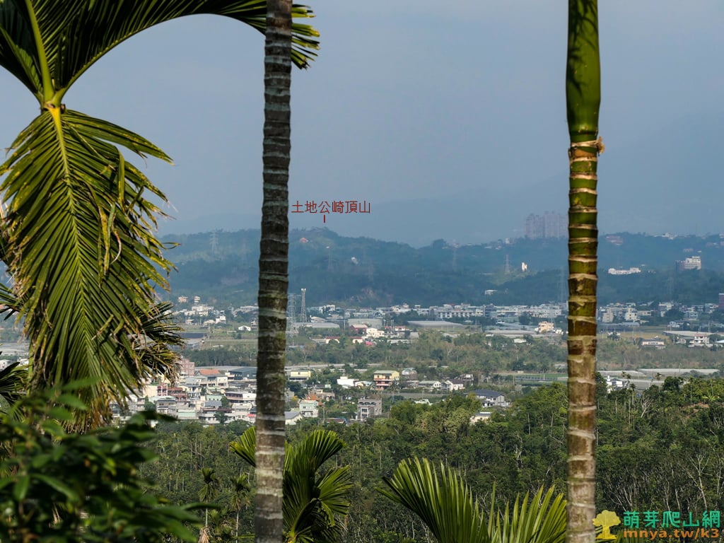 ▲從基石位置回拍椰子園旁停車處,是座輕鬆易達的郊山。