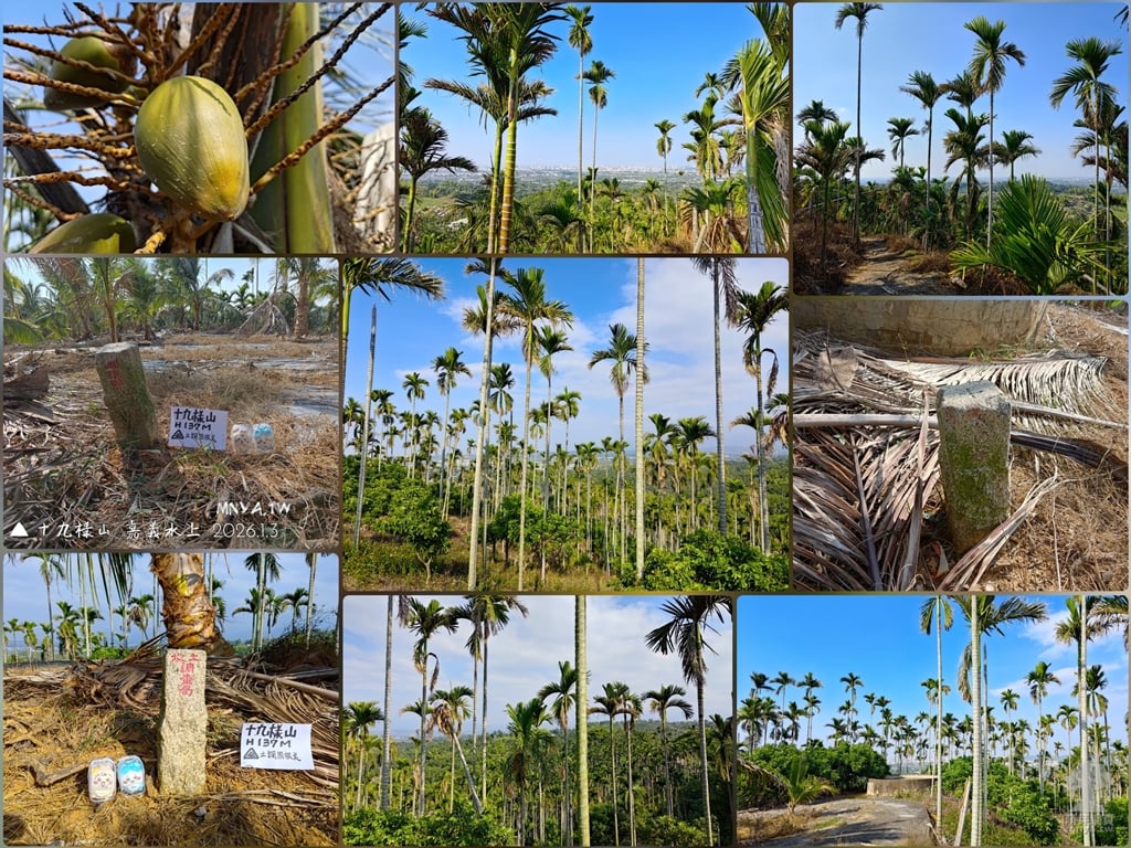 ▲右前方直接穿越椰子園,於水泥大水塔旁見到十九樣山圖根點,走來不用1分鐘,車輛近乎可直達山頂。