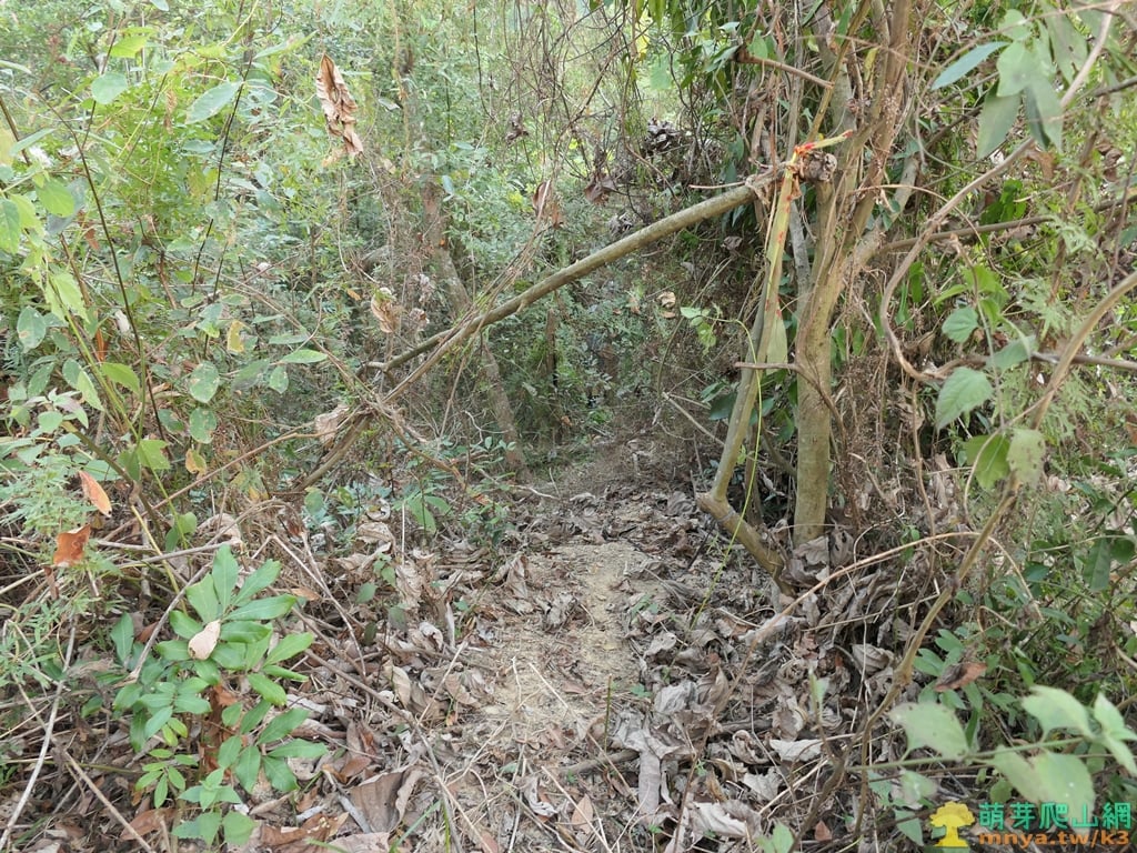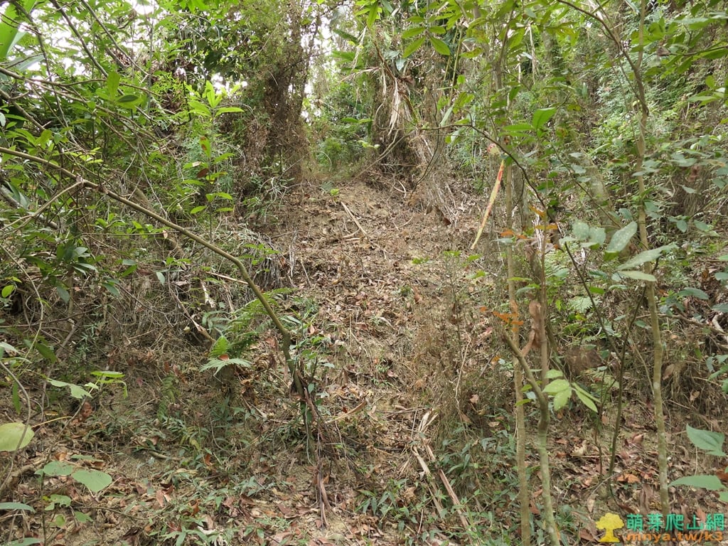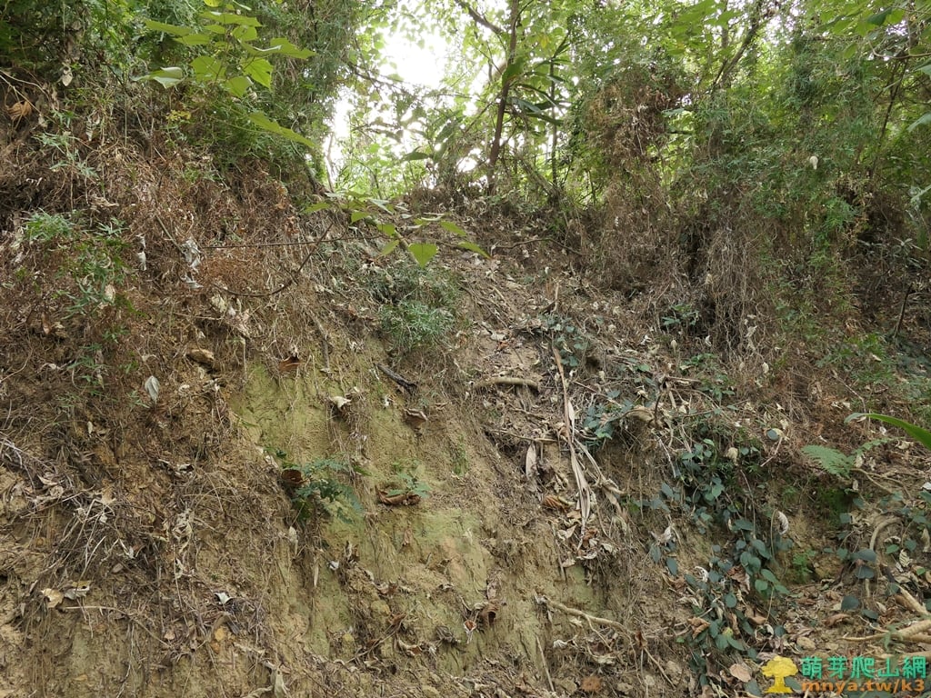 ▲進入山徑後隨即左上陡坡,上至稜線開始爬坡。