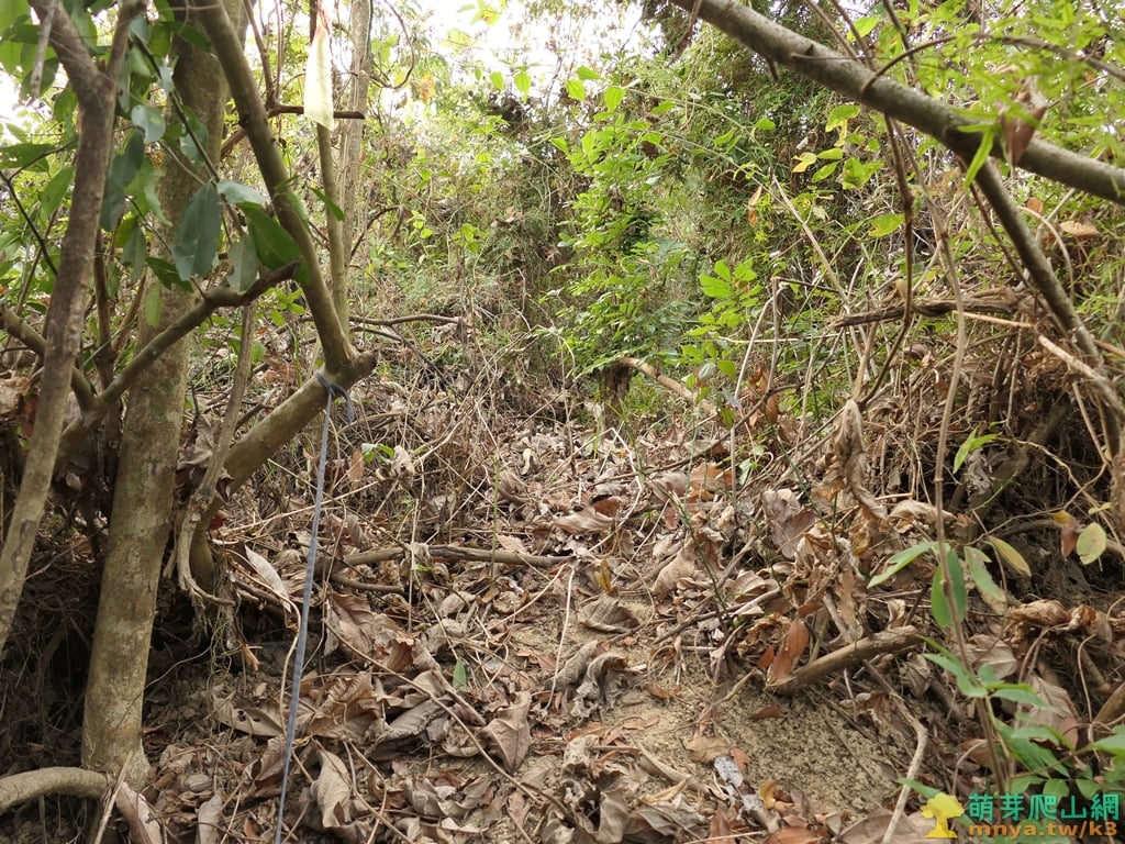 ▲拉繩段過後坡度減緩,遇密藤蔓叢從右側繞過。