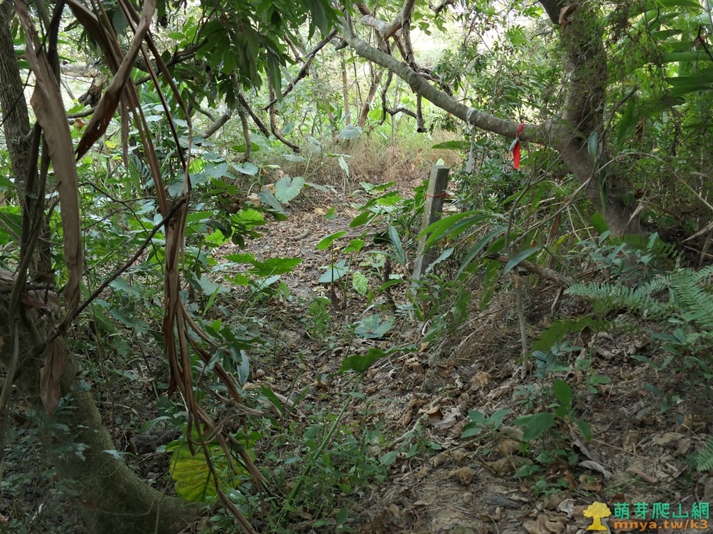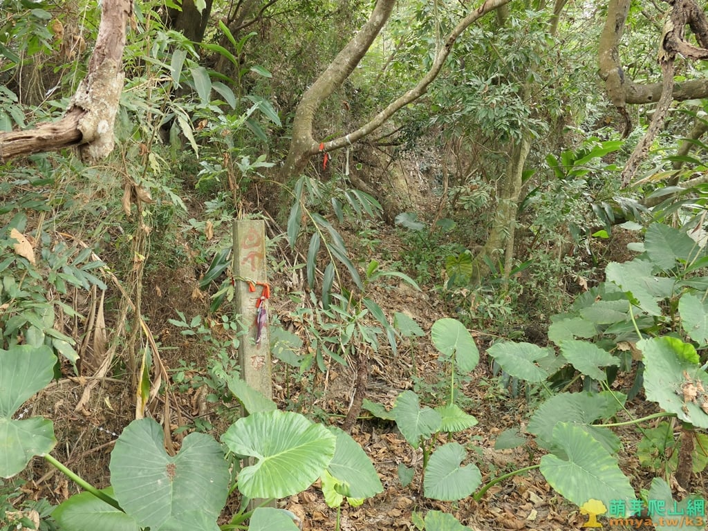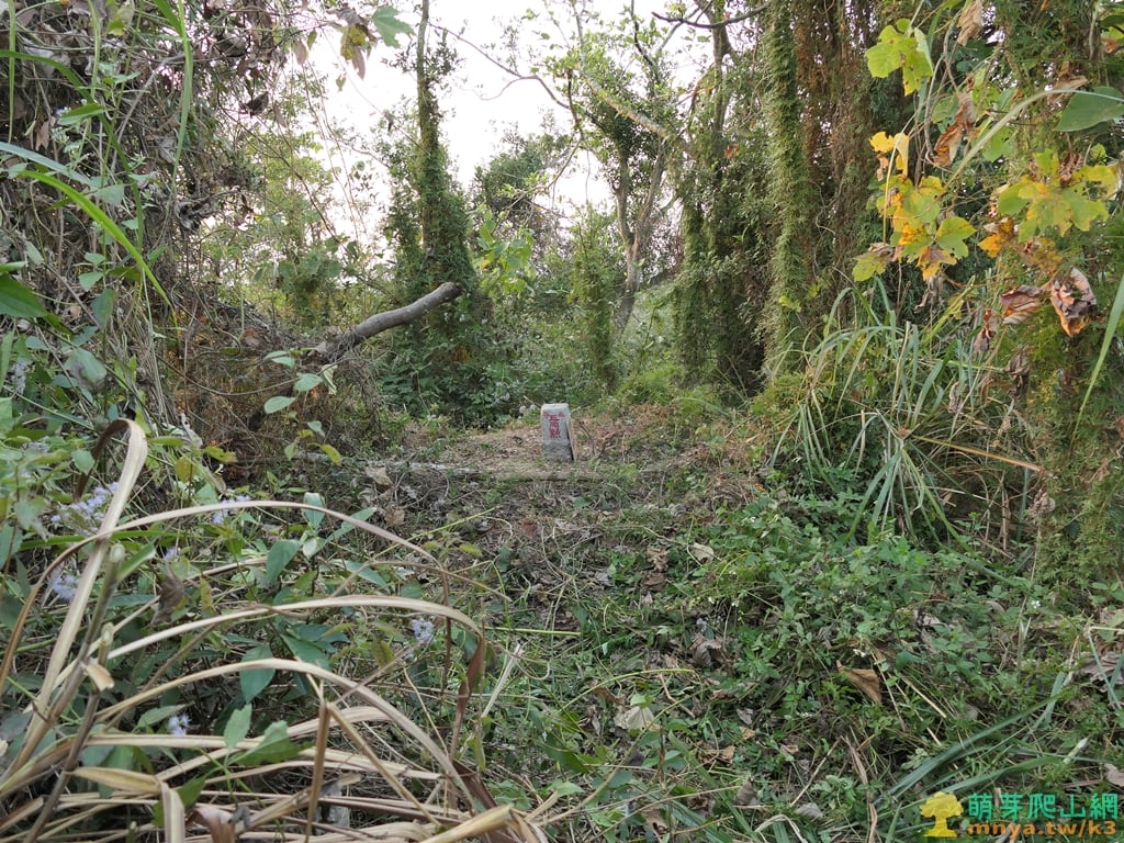 ▲取左入牛稠埔登山口,入口處有一根軍事地界,直距山頂約80公尺。