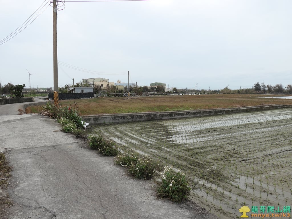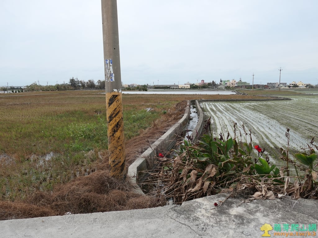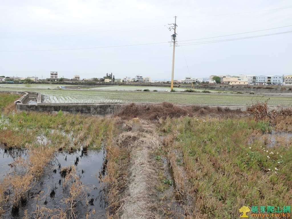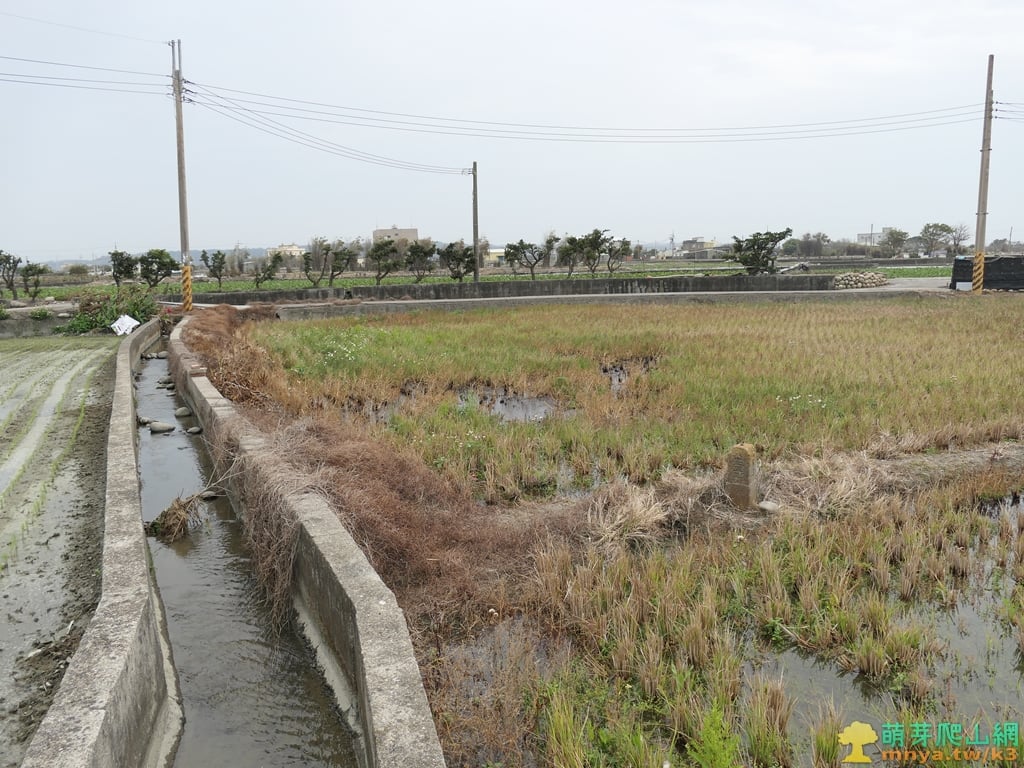 ▲沿水泥水溝走約30公尺左轉橫向田埂,從遠處已可見到田埂上的基石。