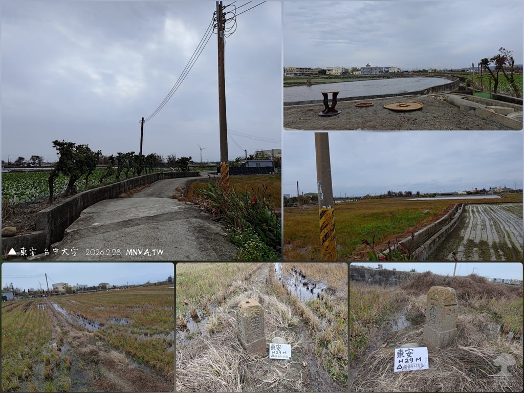 ▲停車後取直往芋頭田的小徑,入口處有一根電信桿東安枝48左分17,從入口便可見芋頭田對面田埂上的基石,距離約30公尺。