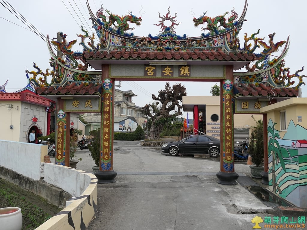 車行由東勢尾停車處回福東二路岔路取右續行向東,0.2K岔路取直,0.3K岔路取右往東安路501巷,0.45K進入社區小路遇岔路皆取直,0.65K經牌樓至大甲文曲里鎮安宮,於廟前的空地停車。