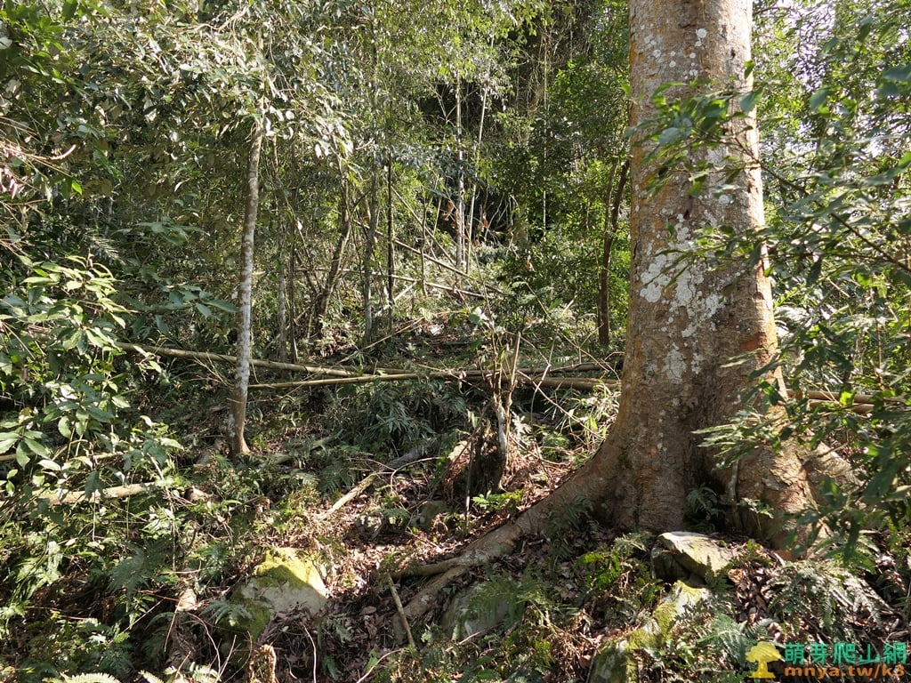 ▲沿稜向上經過幾棵大櫸木,雜木林間偶爾倒竹。