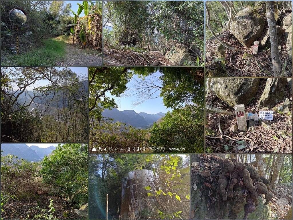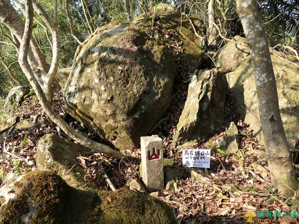 烏石坑口山 標高789公尺 森林三角點(自然石)、山字水泥柱 座標:241845, 2688621;24.3014996, 120.9278317