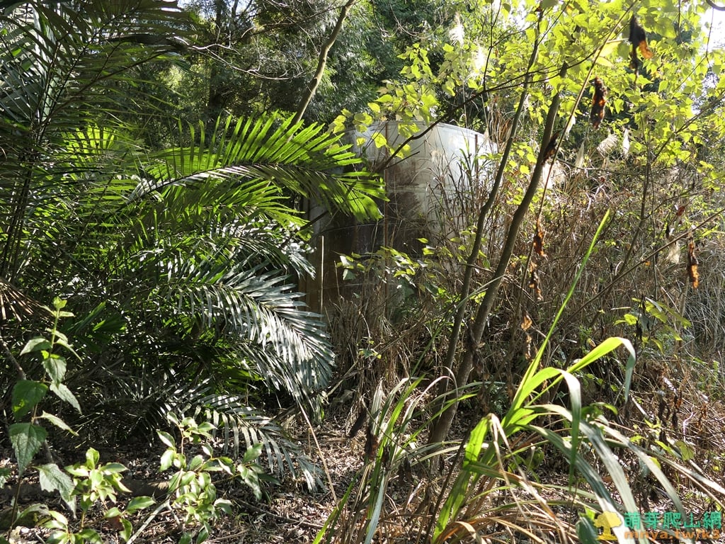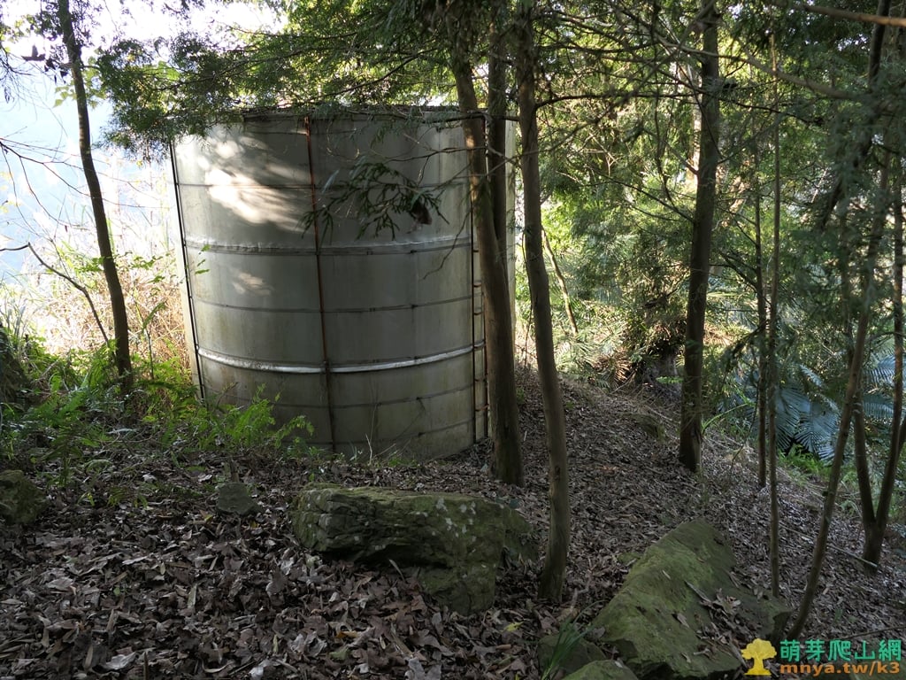 ▲14:28,從上切點上來約50公尺,陡上坡後平台經不鏽鋼大水塔,由左側繞過進入竹林。