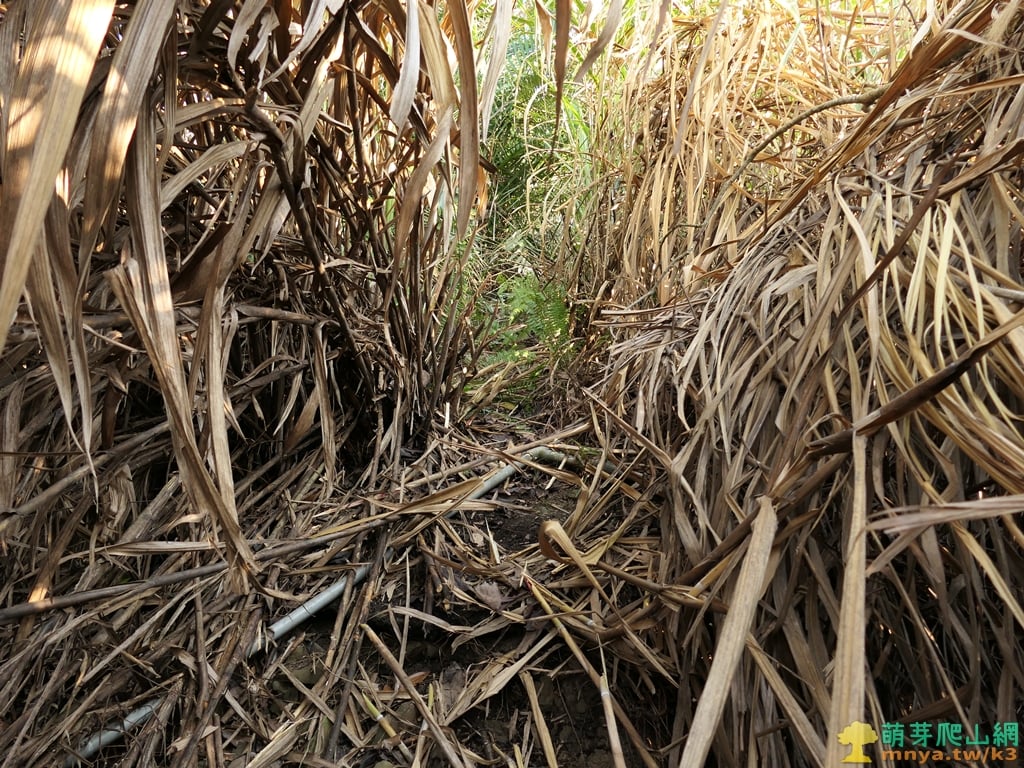 ▲直上突破又厚又密的芒草叢,前段廢棄果園路況較差,開路走起來比較費力。(回程拍攝)