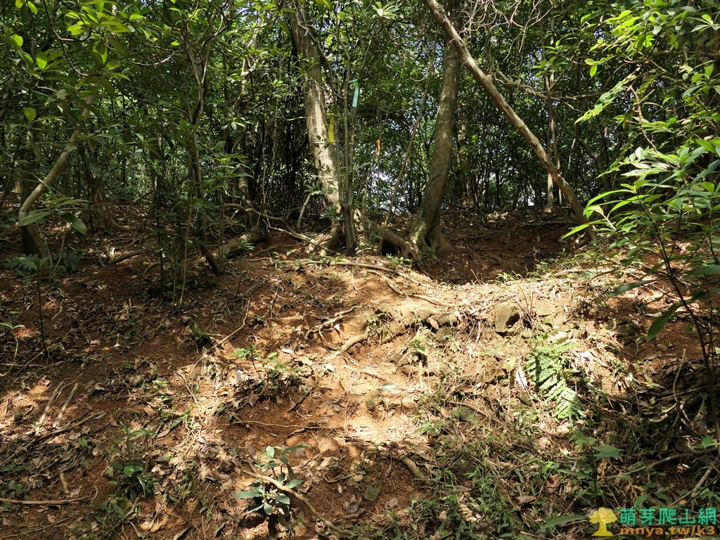 ▲上稜前越過一道橫向的溝渠,接著取左向最高點走。