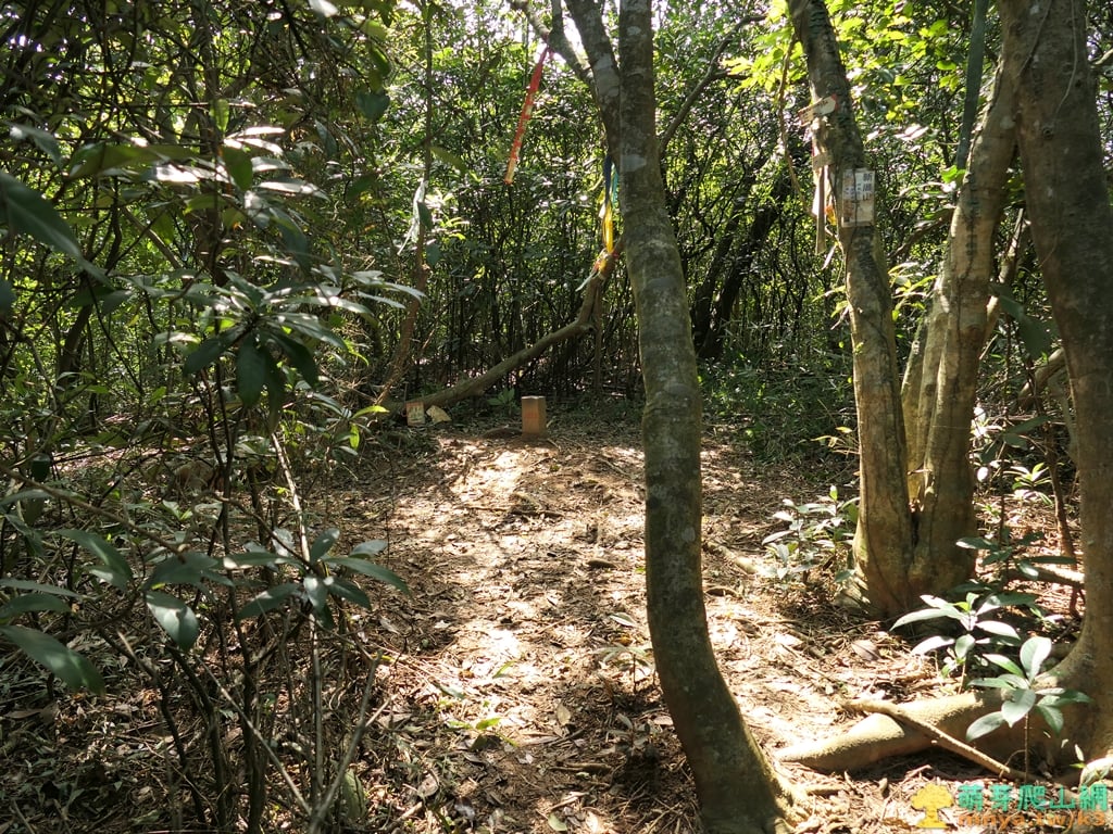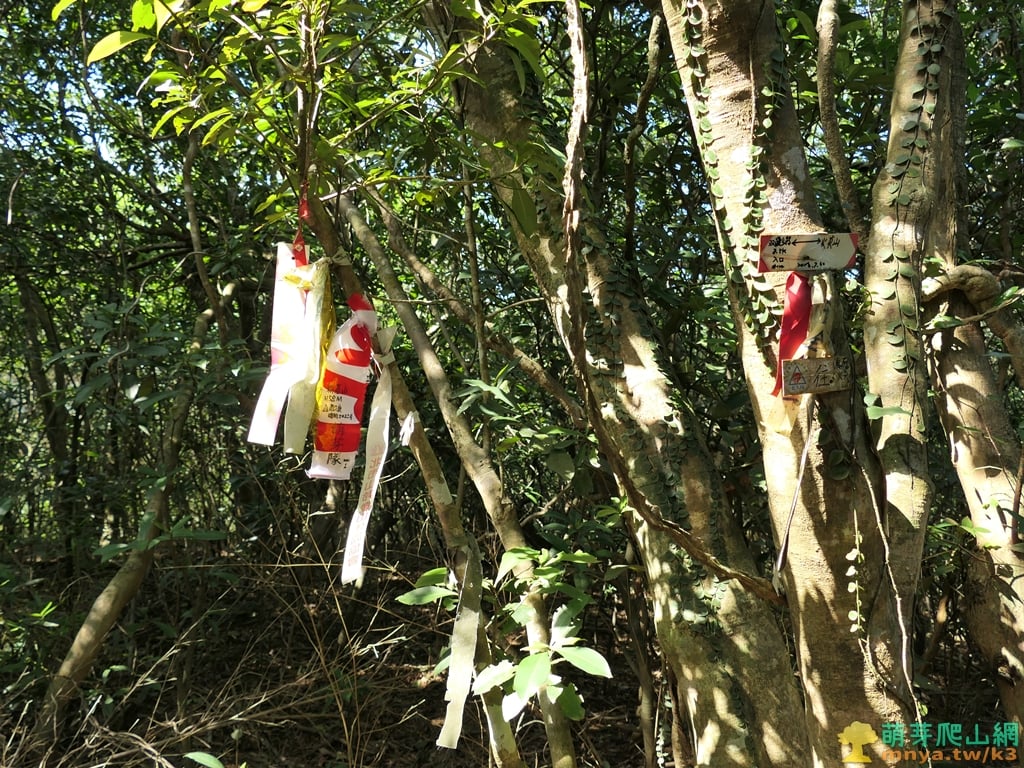 ▲13:08,經倒木後至右上切點,樹幹上有指標往新厝山(約5分),直距剩90公尺。