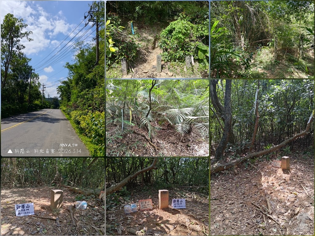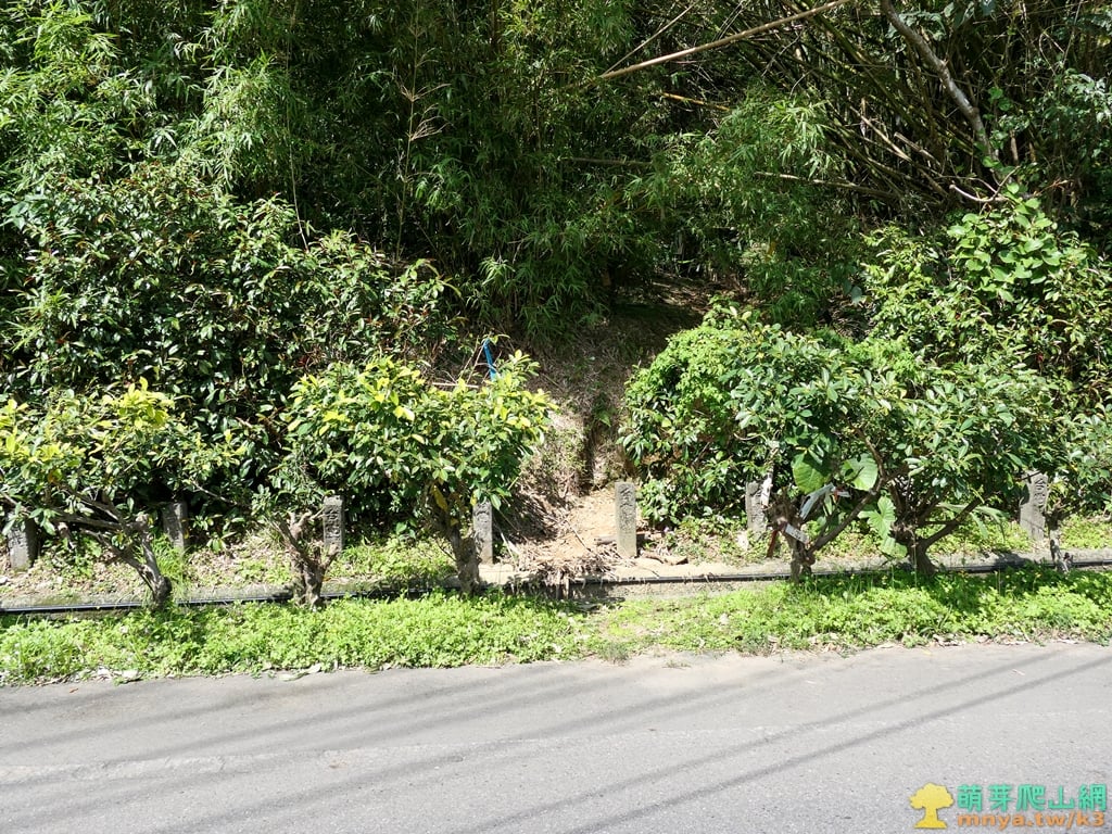 ▲13:01,路邊的登山口進入竹林,路口有指標往新厝山、火炎山,登山口直距新厝山約0.23K。