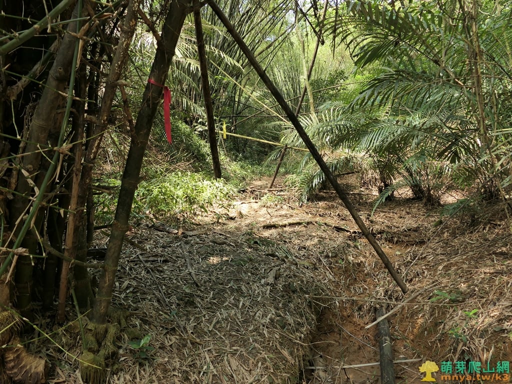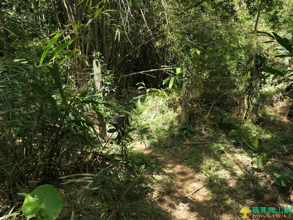 ▲沿小徑行隨即經過一道鐵絲網圍籬,穿越後進入一片竹園。