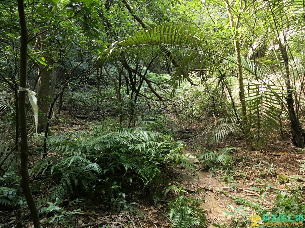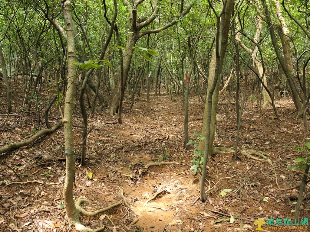 ▲沿乾淨的雜木林山坡直上山頭,林底的土壤顯得有些潮濕。