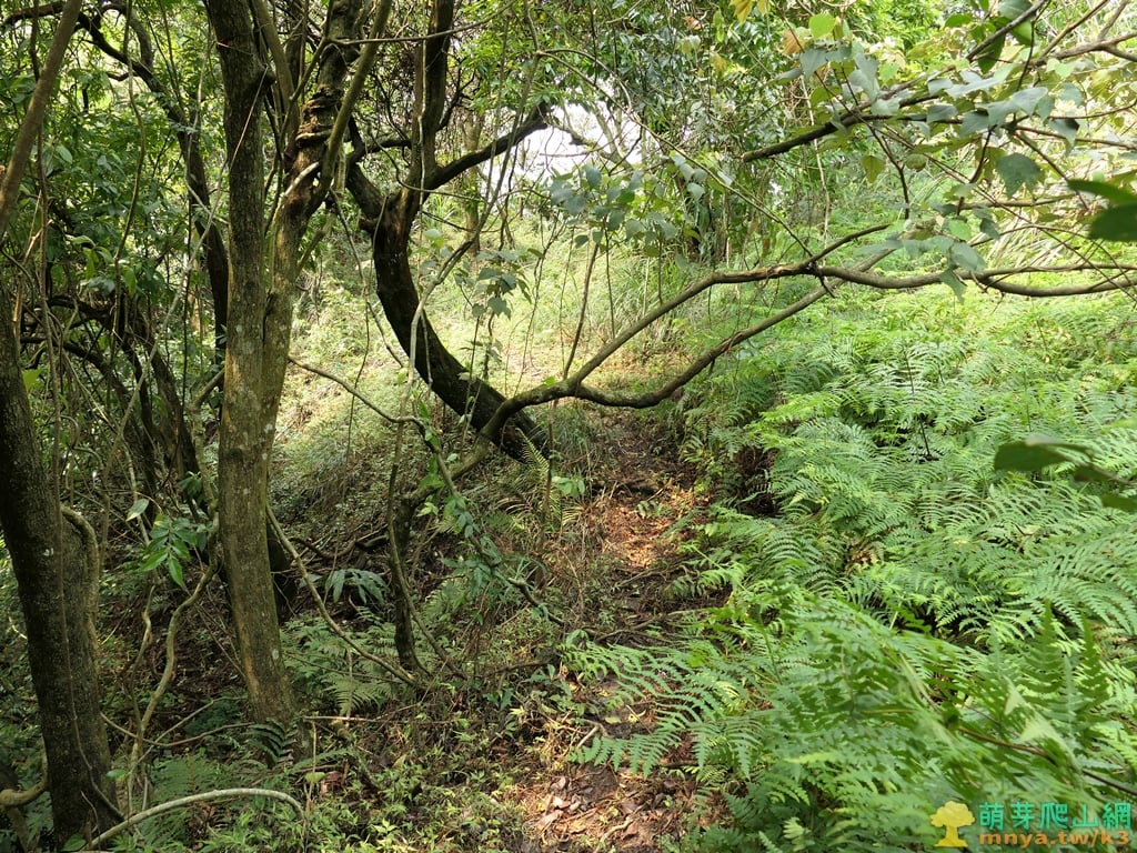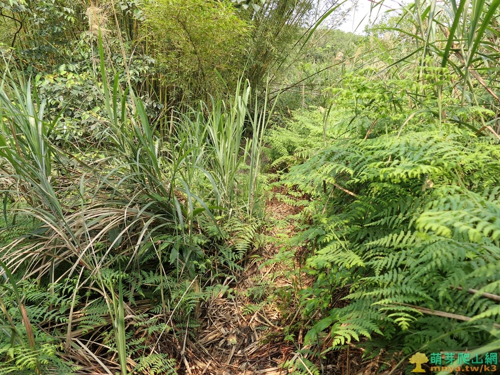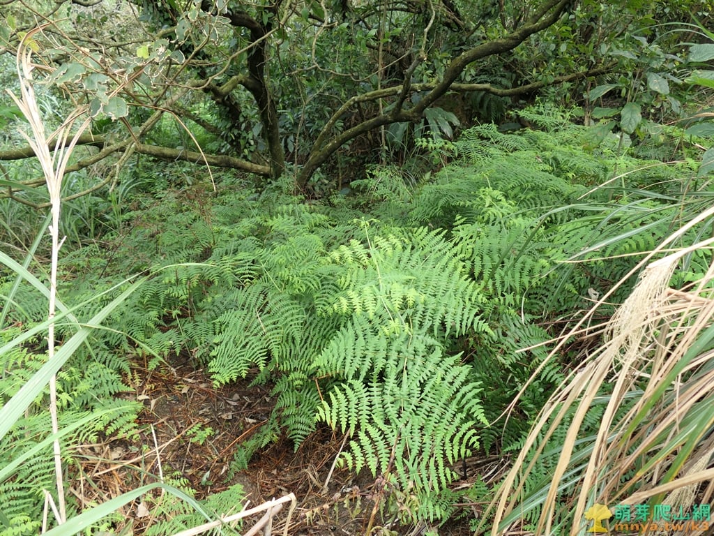 ▲穿越同治時期的古墓後,續行墓左側山腰的山徑,過一片蕨草山坡向前方支稜走。
