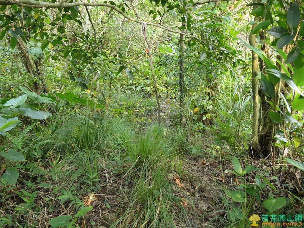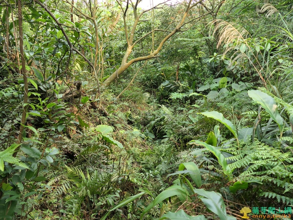 ▲沿斜坡山腰橫切,一段路後至石壁前取右上山溝。