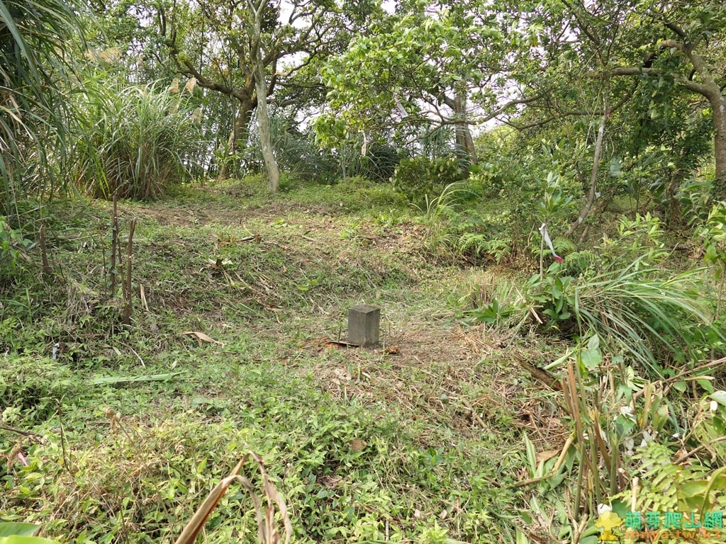 ▲基石位置全景,位於山坡地的舊梯田地,下方山谷可見私人產業道路,以前從那邊來跨越溪溝上切一點便可到達基石處,可惜道路因私人土地關係被封閉已經不能走了。
