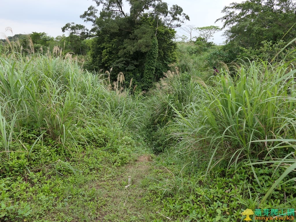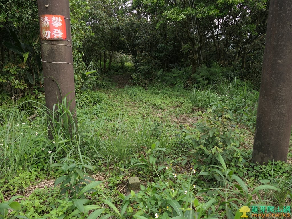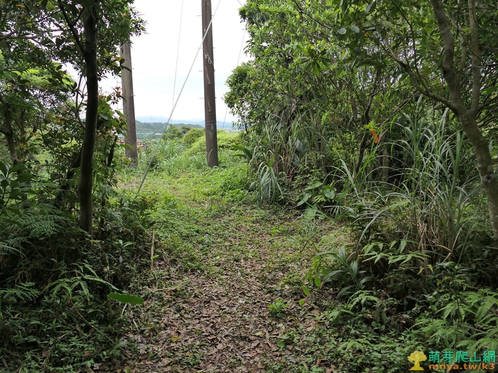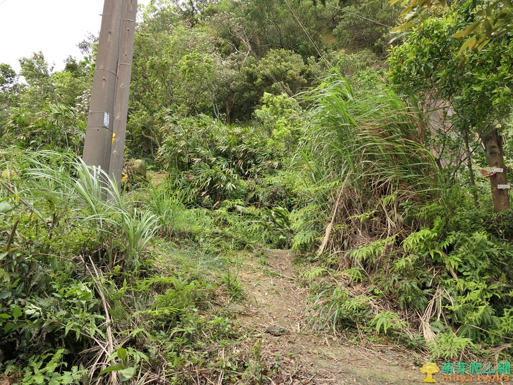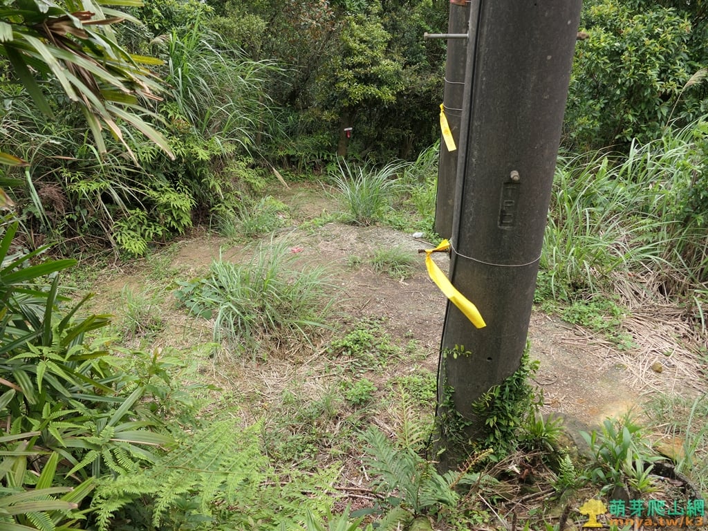 ▲陡上鑽過雜草區後至電塔前平台,前行左彎繞至電塔左側。