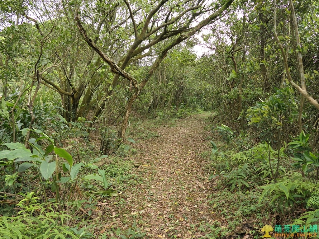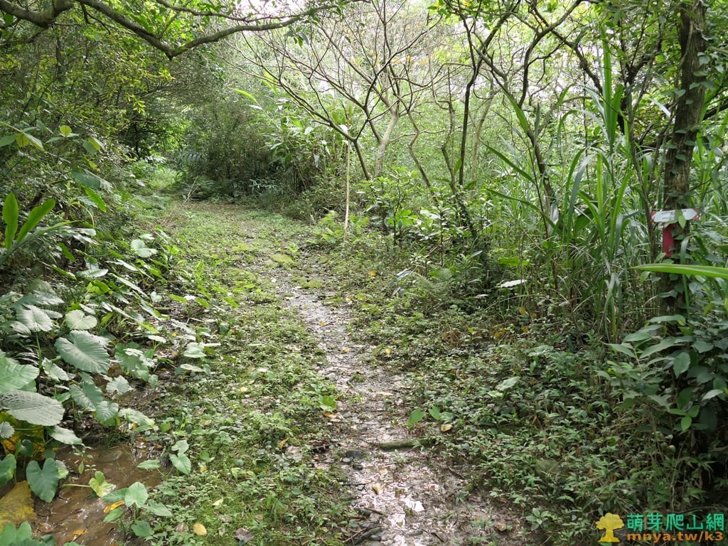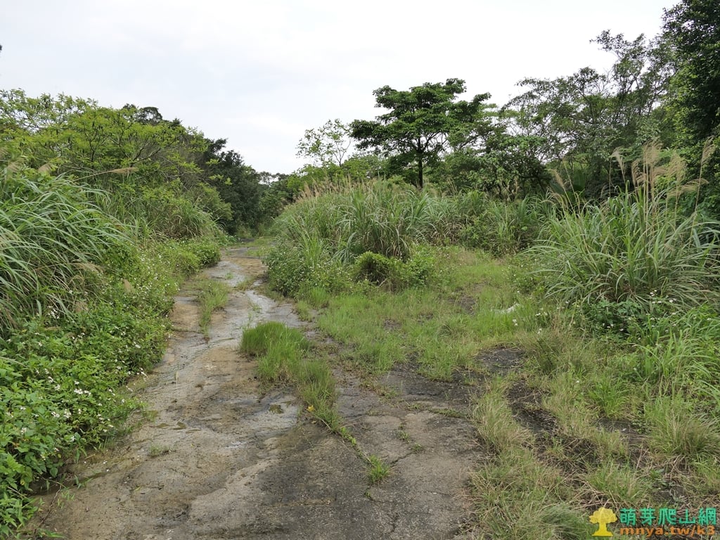 ▲通過芒草原後廢棄產業道路進入樹林底沿山坡邊走,有一段破碎的水泥路面。