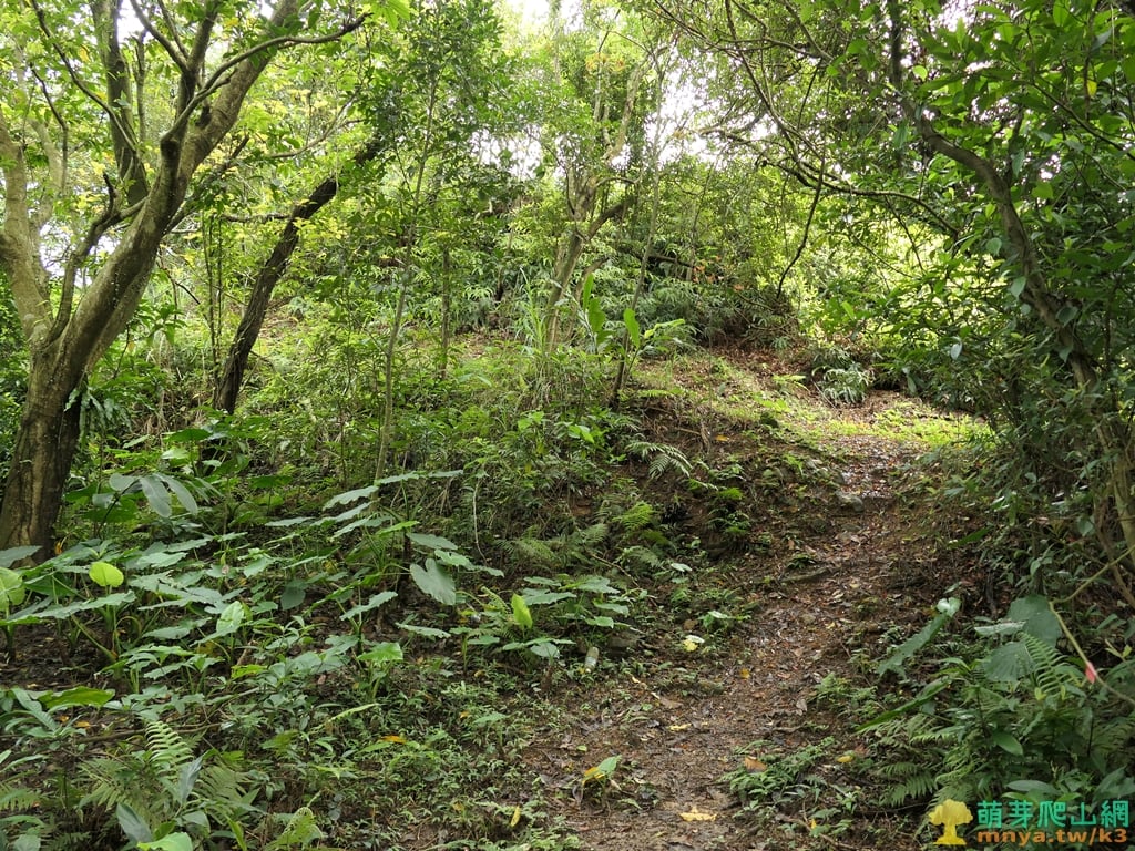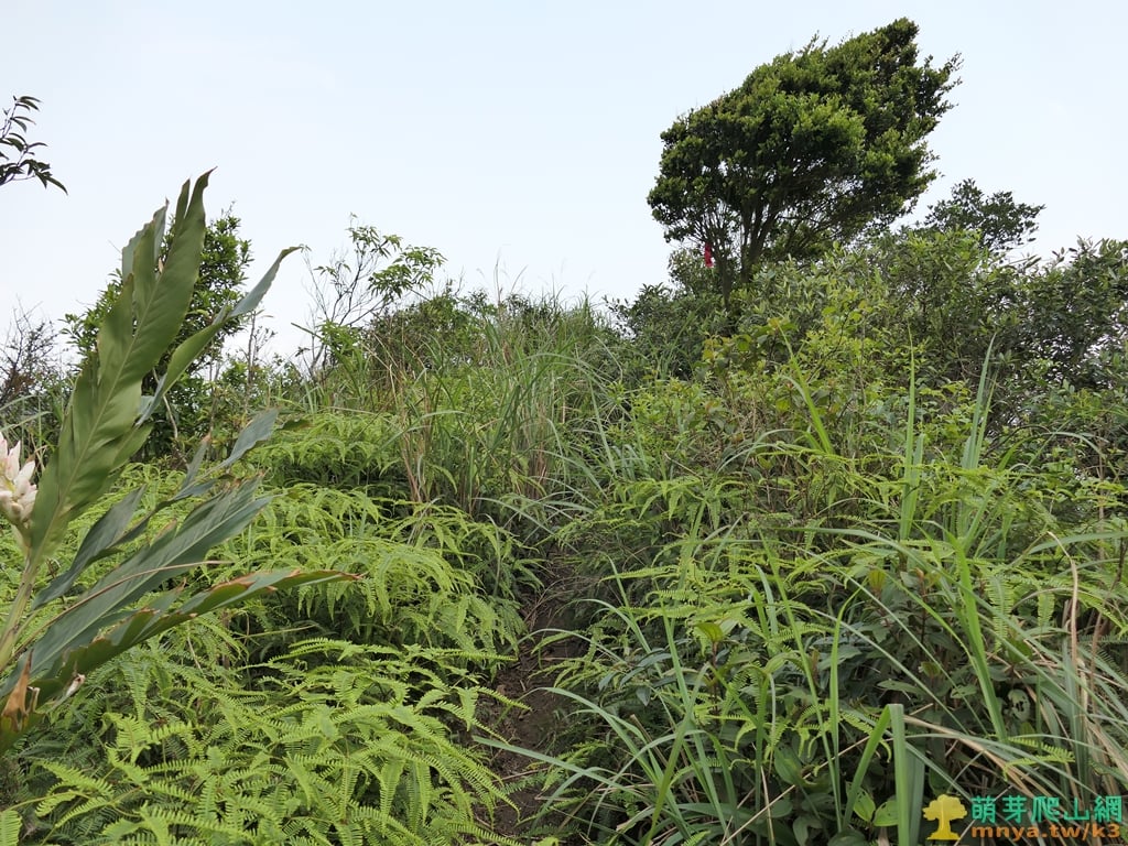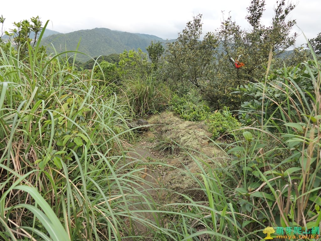 ▲上稜後取右上往高點,稜線上滿是芒萁雜草路徑有些被遮蔽。