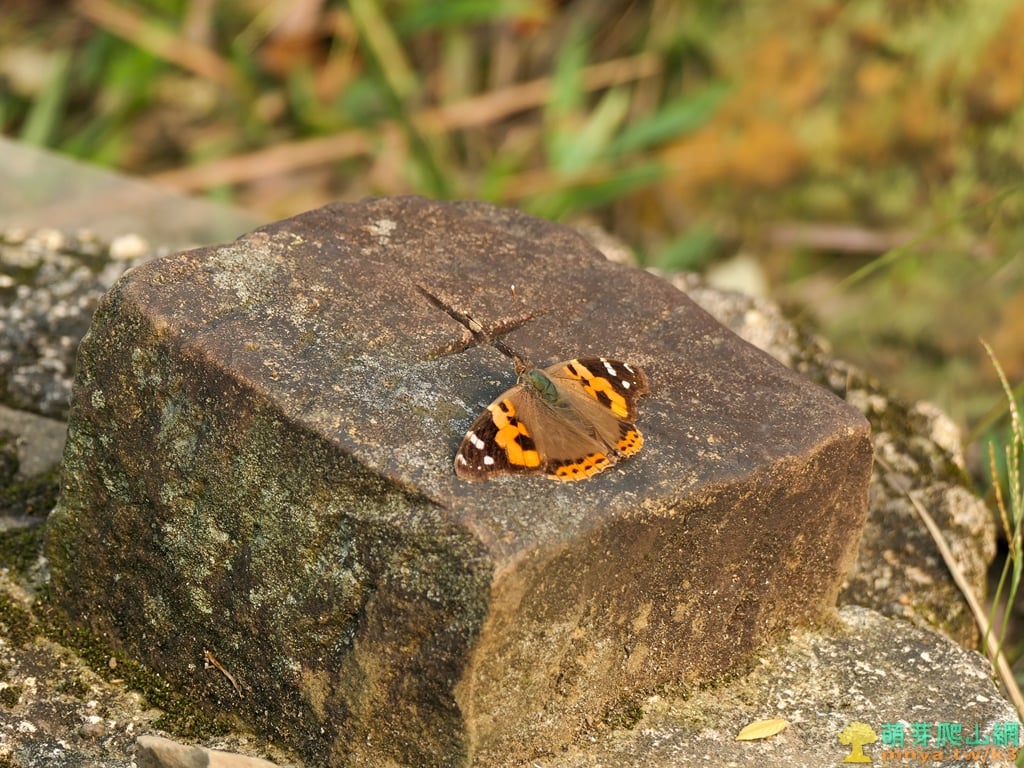 ▲基石上的大紅蛺蝶,又稱橙蛺蝶、印度赤蛺蝶。