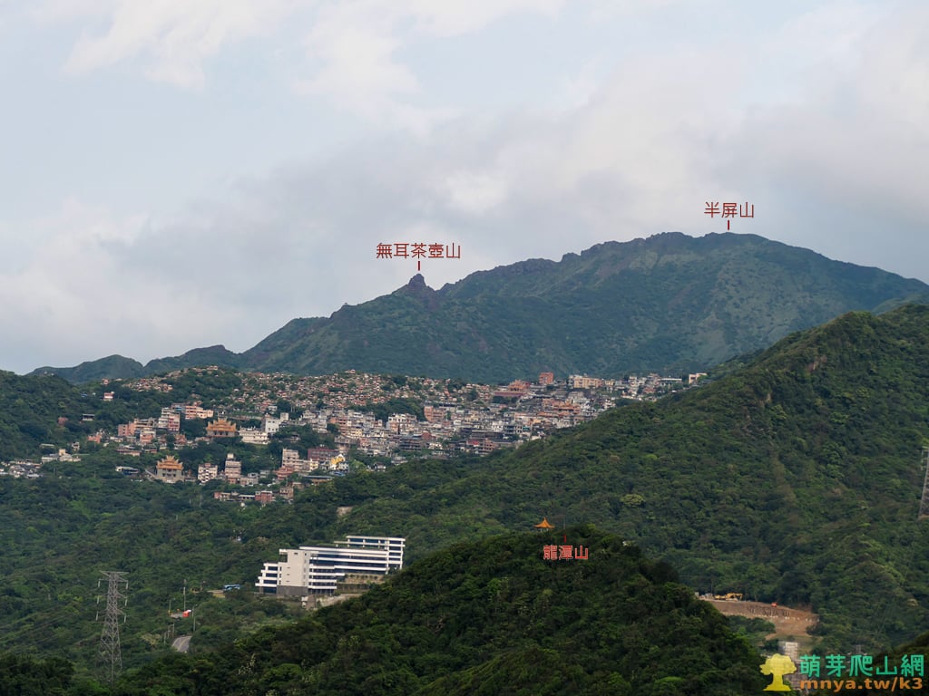 ▲拉近看龍潭山(199M)山頂有一座涼亭,後方就是九份山城及無耳茶壺山(602M)與半屏山(705M)連稜。