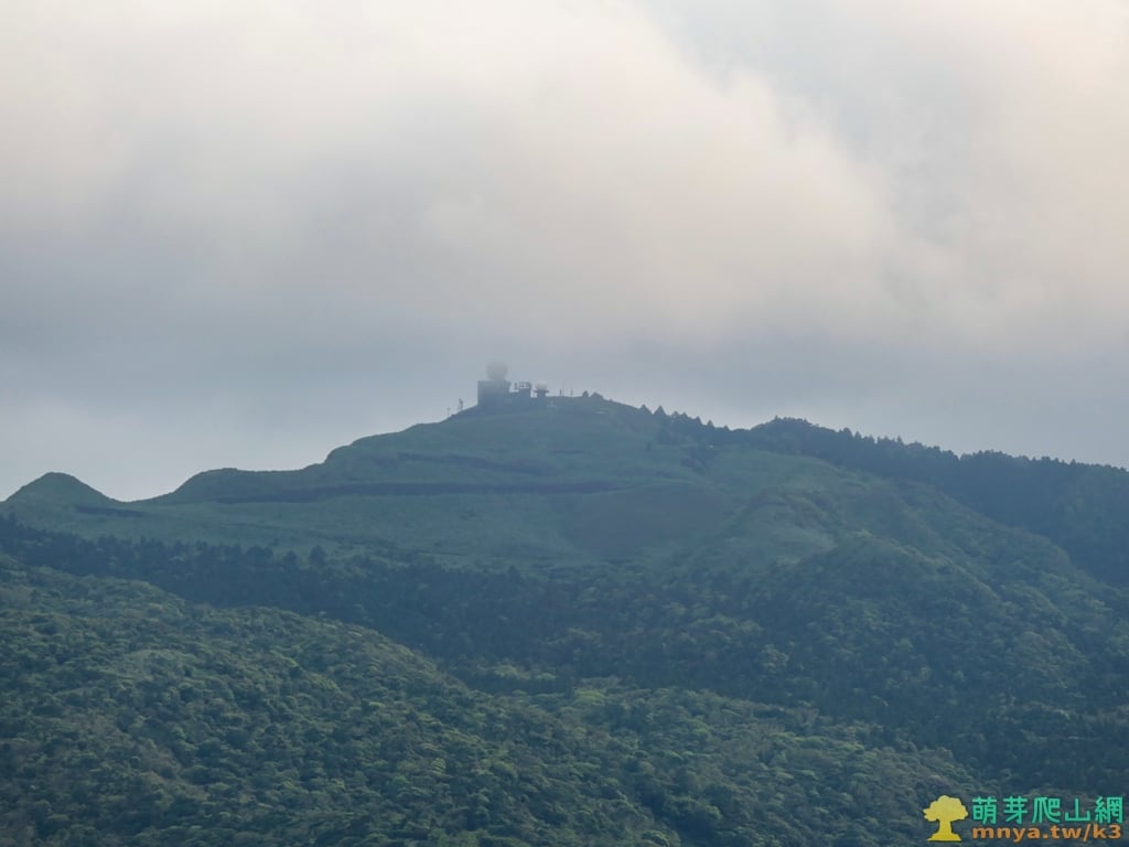 ▲拉近眺望五分山(757M)與山頂的中央氣象署五分山氣象雷達站,
