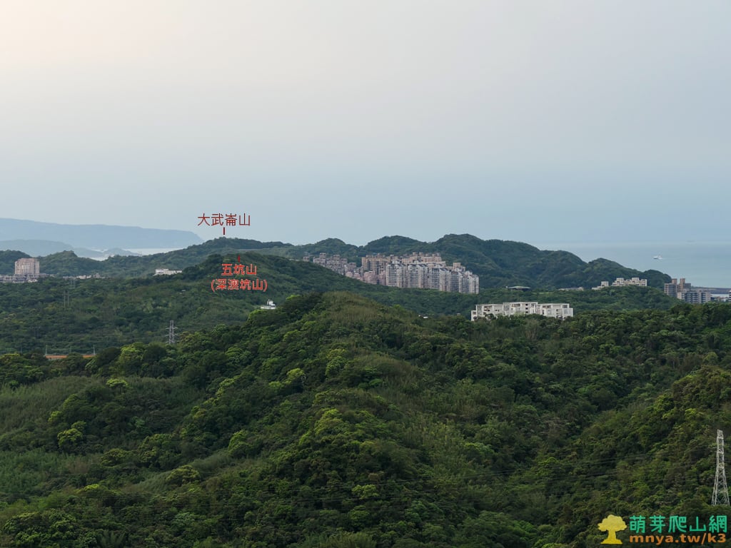 ▲往西北拉近看總督府步道上的五坑山(深澳坑山;153M),與後方小百岳之一的槓子寮山(163M)。