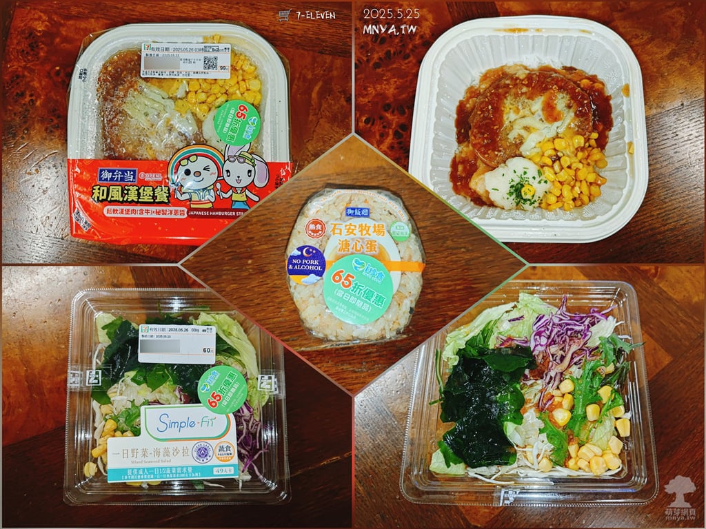 20250525 7-ELEVEN:OPEN和風漢堡餐、一日野菜-海藻沙拉、石安牧場溏心蛋飯糰(圓)
