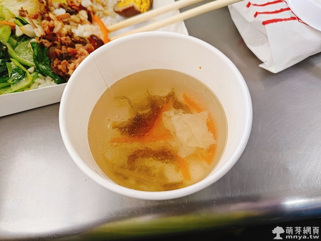 ▲ 自取的熱湯,搭配便當吃飽飽,不要看便當盒小,塞好塞滿份量可說是相當足夠的!