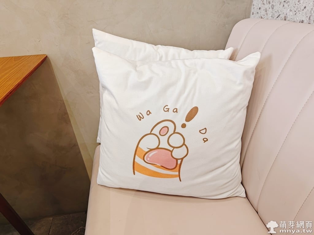 ▲ 抱枕上有店家可愛的 LOGO 肉球圖案,整體氛圍療癒又舒適,適合拍照打卡。