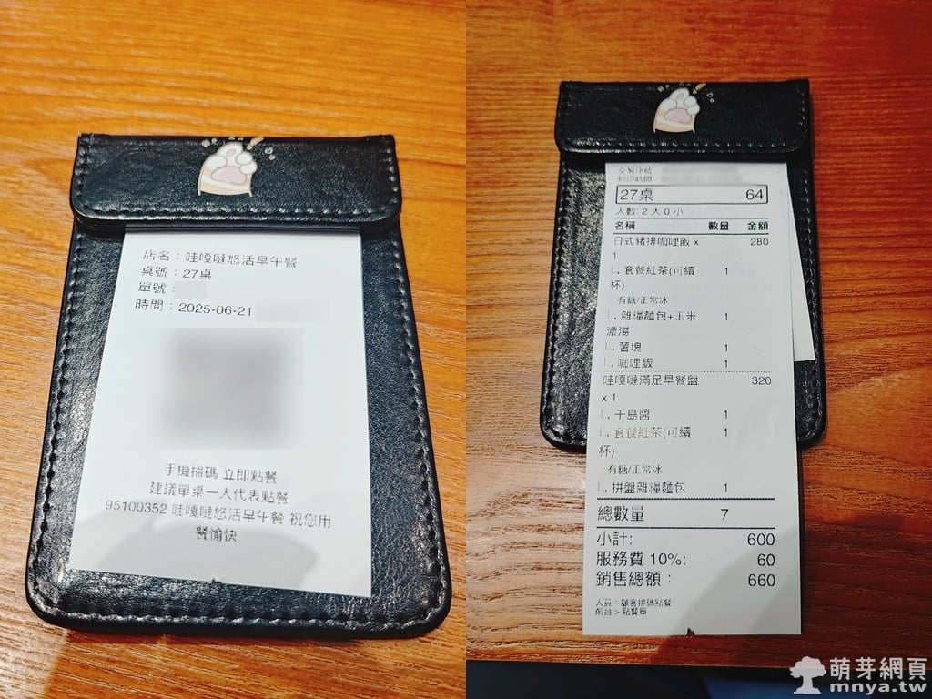 ▲ 左側是點餐用的 QR Code,結帳時會有明細,消費明細清楚列出餐點與金額,10% 服務費也有標示得很明白。