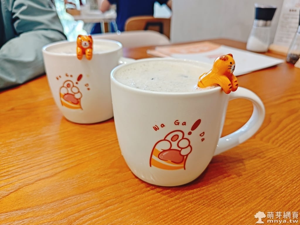 ▲ 飲品用可愛馬克杯盛裝,上面還有療癒小貓裝飾,讓喝飲料也增添一份趣味感。