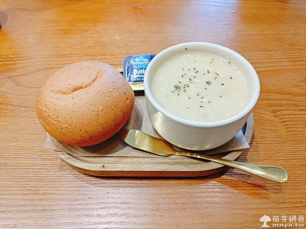 ▲ 餐前麵包搭配玉米濃湯,麵包鬆軟有彈性,濃湯香滑順口,是套餐的基本小確幸。