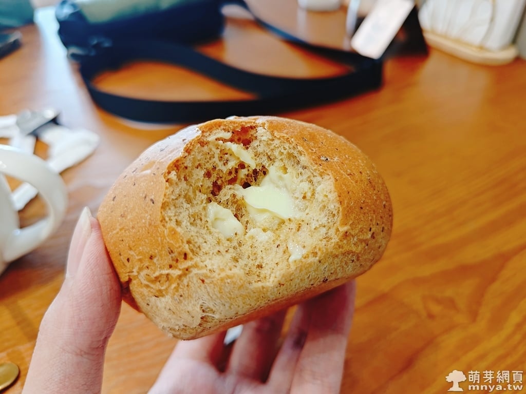 ▲ 麵包剝開後塗上奶油,熱熱吃超香,一口咬下還有淡淡穀物香氣,很有飽足感。