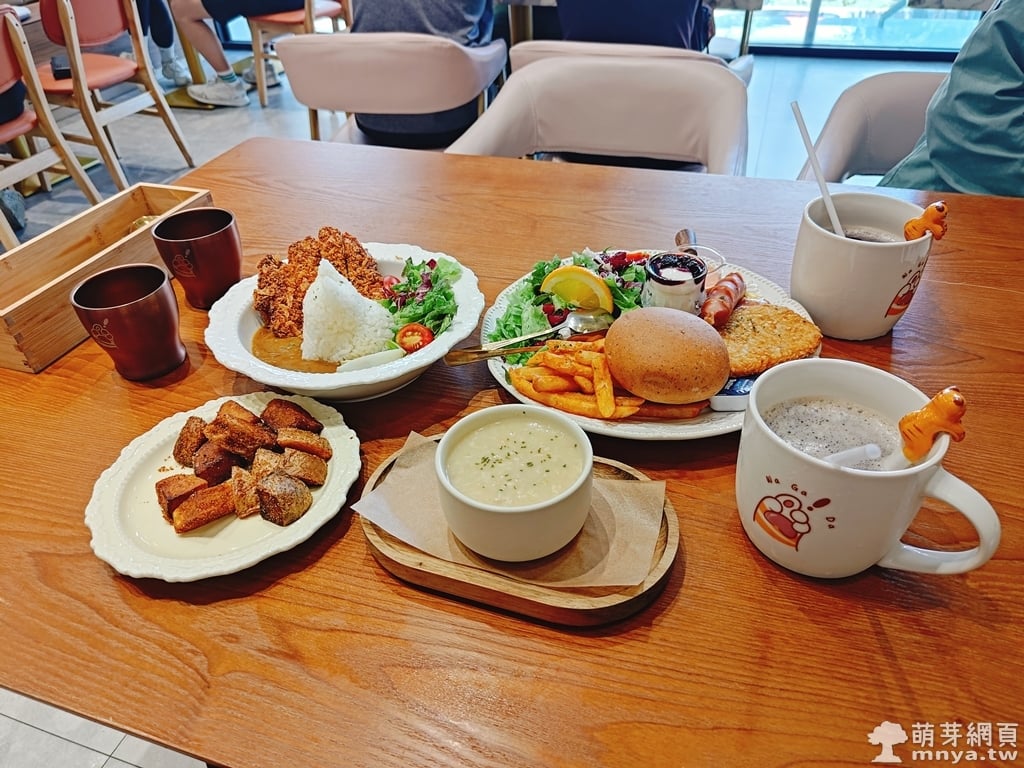 我點「日式豬排咖哩飯(280元)」,內含薯塊、咖哩飯、套餐紅茶〈可續杯,有糖・正常冰〉、雜糧麵包+玉米濃湯,白飯有貓貓造型,很可愛,份量大,口感佳,很好吃 😋;我弟點了「哇嘎嗶滿足早餐盤(320元)」,內含拼盤雜糧麵包、千島醬、套餐紅茶〈可續杯,有糖・正常冰〉。整體看上去真的是很豐盛,也是吃了一個小時才完食。