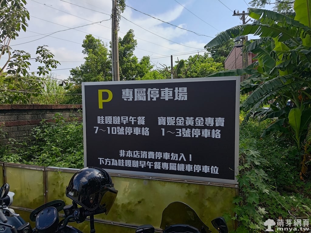▲ 專屬停車場有清楚告示牌,哇嘎噠專屬停車格編號 7~10 號,機車則是在告示牌下停放,貼心提供給用餐顧客專屬車位。