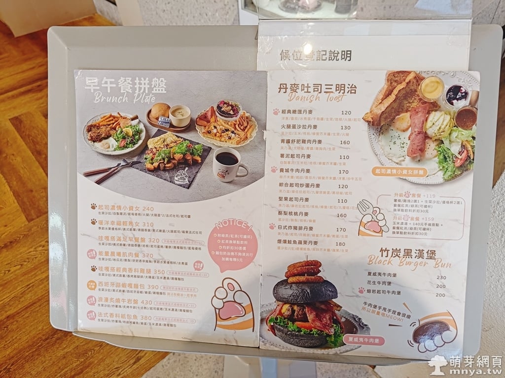 ▲ 菜單內容豐富多樣,從早午餐拼盤、丹麥吐司三明治到竹炭漢堡等選項應有盡有。