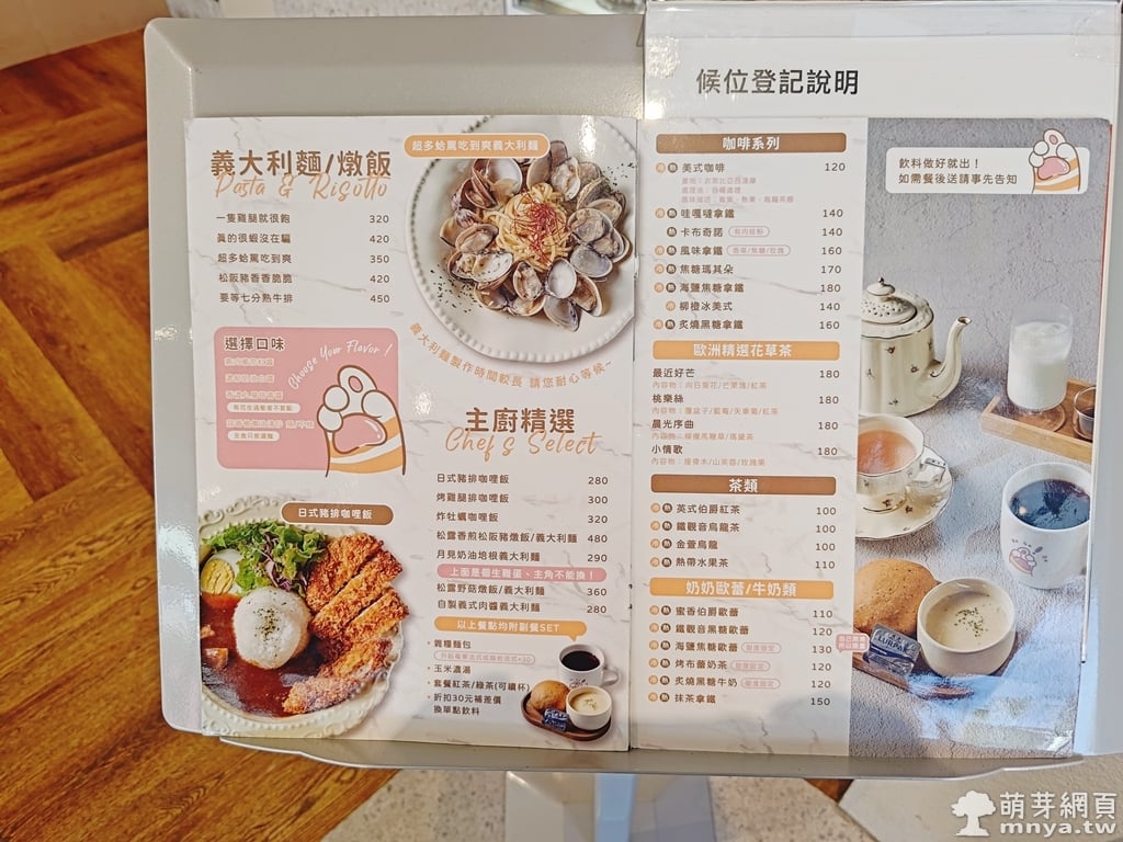 ▲ 主餐部分有義大利麵、燉飯與各式精選排餐,飲品則有咖啡、花草茶與奶茶,選擇非常多元。