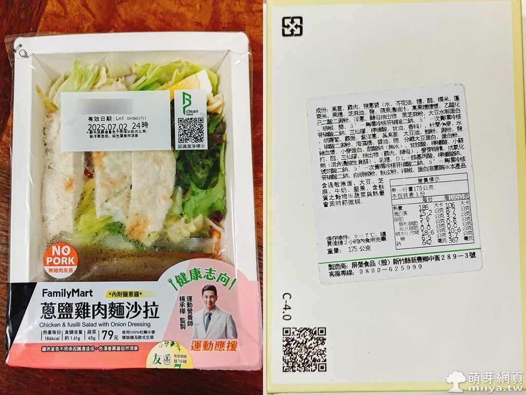 ▲「蔥鹽雞肉麵沙拉」包裝及產品資訊。