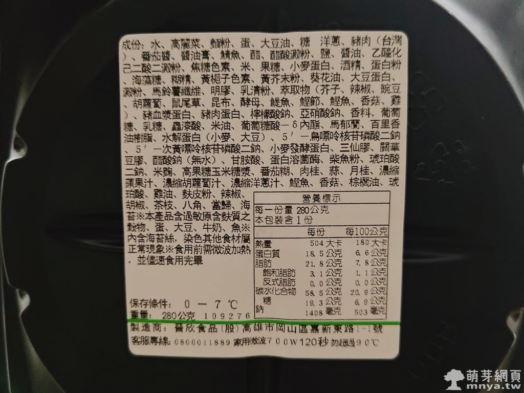 🍱 摩登燒:熱量 504 大卡、280 公克,售價新台幣 85 元。