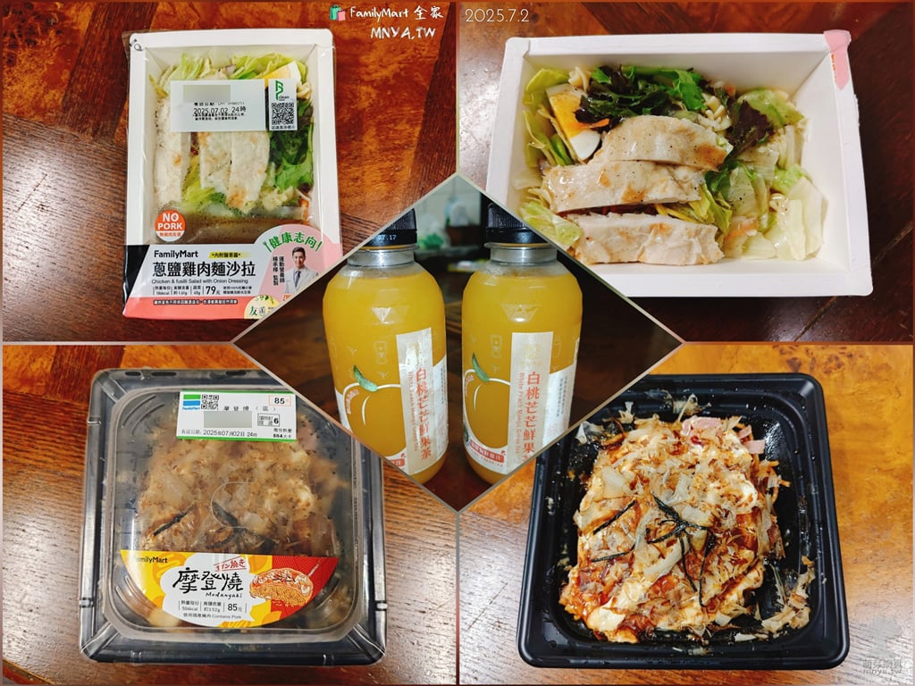 20250702 FamilyMart 全家:蔥鹽雞肉麵沙拉、摩登燒、春水良品-白桃芒芒鮮果茶