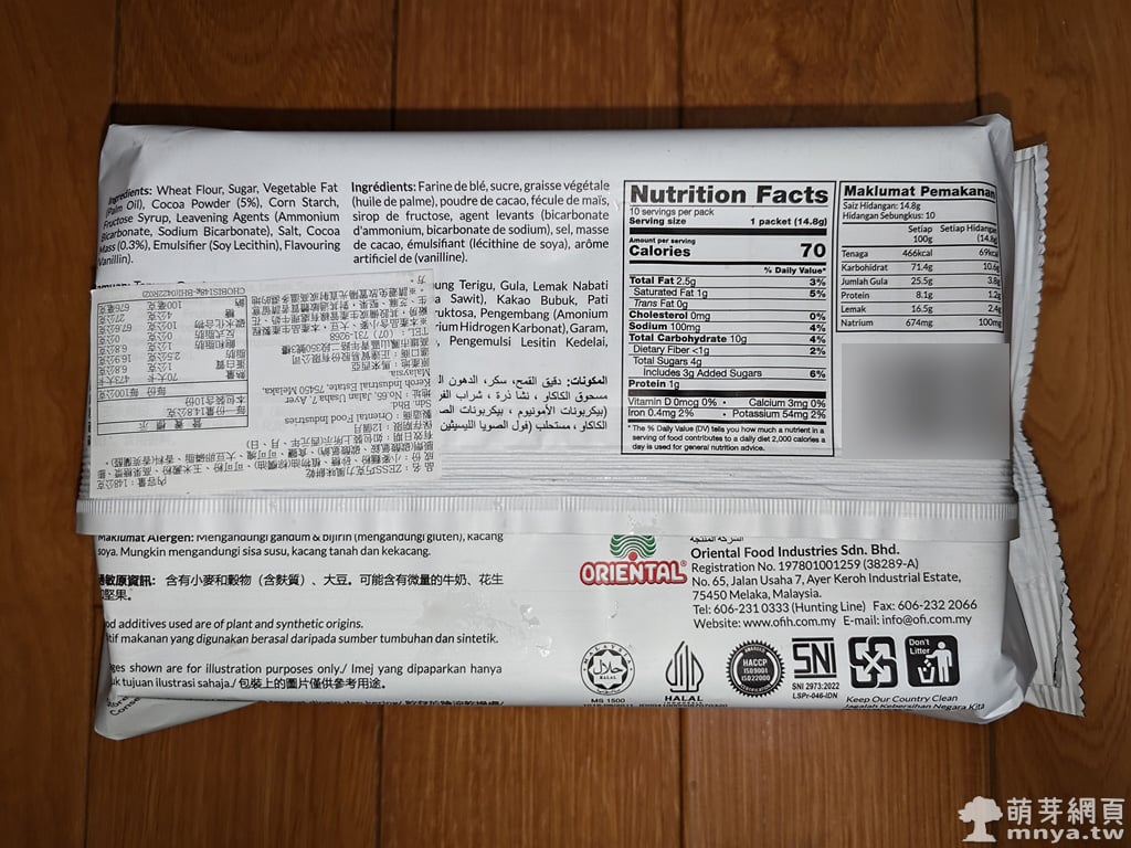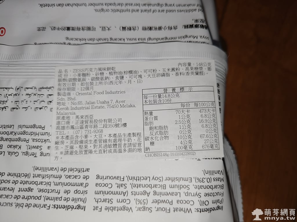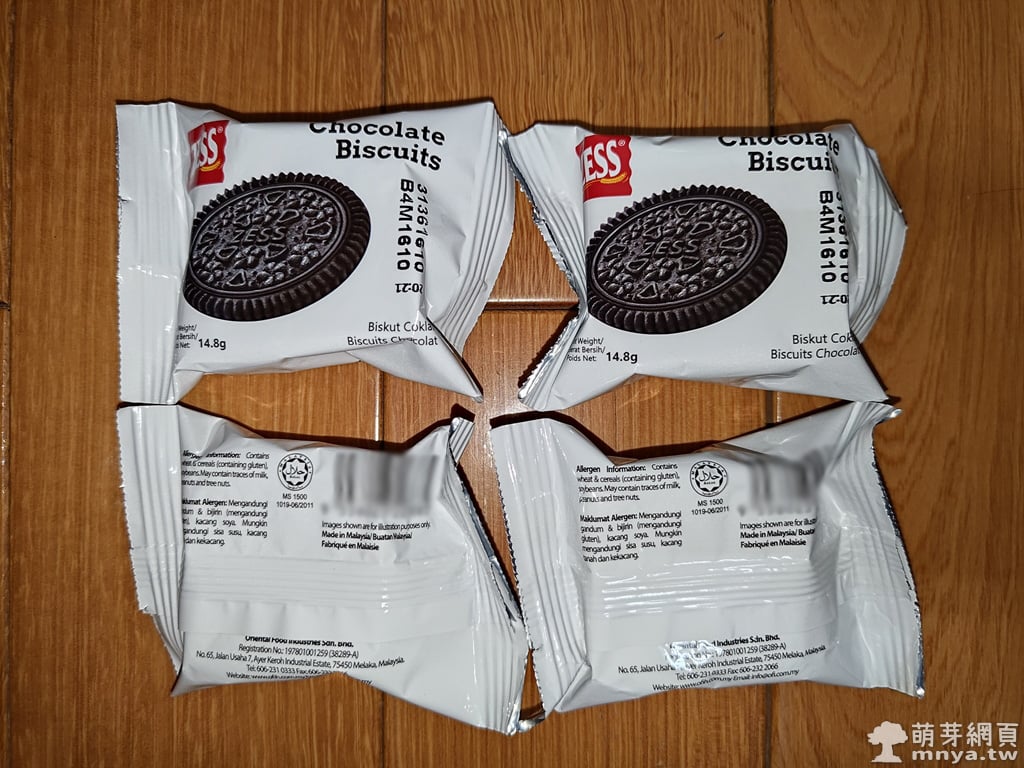 最近入手了一款在網路上討論度不低的【ZESS】巧克力風味餅乾,這款產品主打一盒裡面有 10 小包,總重 148g,售價只要 52 元新台幣,對於想要平價又能滿足巧克力口味的朋友來說,真的很划算。拆開外盒後可以看到裡面排列整齊的 10 小包,每包裡頭有 4 片餅乾,不管是分給小朋友還是大人自己配牛奶,都非常方便。一包的份量其實剛剛好,不會一下子吃太多,對於注重熱量或是想要控制食量的人來說相當貼心。餅乾本身外型跟 OREO 很像(可以說是 OREO 的 O!),不管是大小還是色澤都很有那種經典巧克力夾心餅乾的感覺(只是沒有夾心!),實際入口之後,巧克力香氣濃郁,口感酥脆。成份表上可以看到使用了小麥麵粉、砂糖、棕櫚油、可可粉、高果糖漿等,雖然含糖量不低,不過以這種零食來說還算常見,想要偶爾犒賞自己一點甜食,這款 ZESS 巧克力餅乾真的很可以。包裝背面清楚標示營養成分,每包大約 70 大卡,方便你掌握每天的熱量攝取,也貼心提醒有小麥或大豆過敏的人要注意。餅乾產地來自馬來西亞,保存期限有一年,只要避開高溫潮濕或陽光直射的地方就能放得很安心。