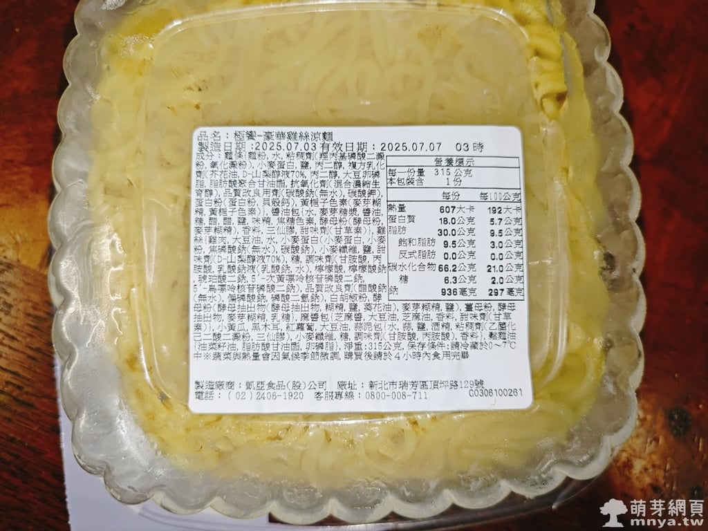 ▲「極饗-豪華雞絲涼麵」產品資訊。