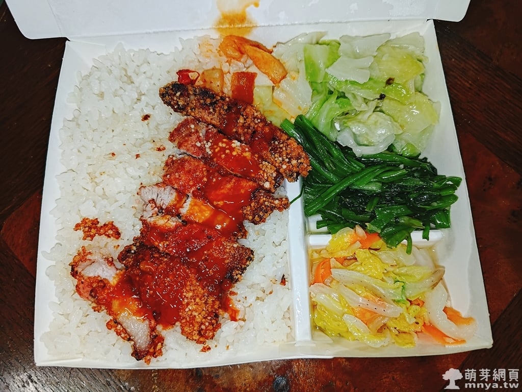 這次點了四款便當,分別是:(1)「鐵路滷排骨飯(115元)」,木盒裝的滷排骨飯真的很有懷舊感,排骨厚實入味、無骨處理,搭配豆干、滷蛋、酸菜,配菜不馬虎,每一口都吃得到傳統台鐵便當的精髓,吃完相當有飽足感。(2)「炸五花紅糟肉便當(120元)」,五花肉裹著紅糟酥炸,外皮酥脆、肉質Q彈,搭配三樣新鮮時蔬,口味豐富又不膩,小辣。(3)「滷大雞腿便當(120元)」,雞腿滷得非常入味,肉質軟嫩,配上三道配菜,味道平衡又解膩,小辣。(4)「炸大雞腿便當(125元)」,以大小來說跟滷大雞腿一樣,也同樣有豐盛的配菜組合,整體份量很足,小辣。整體口味比較重,大便當大概都是預設小辣,要注意。